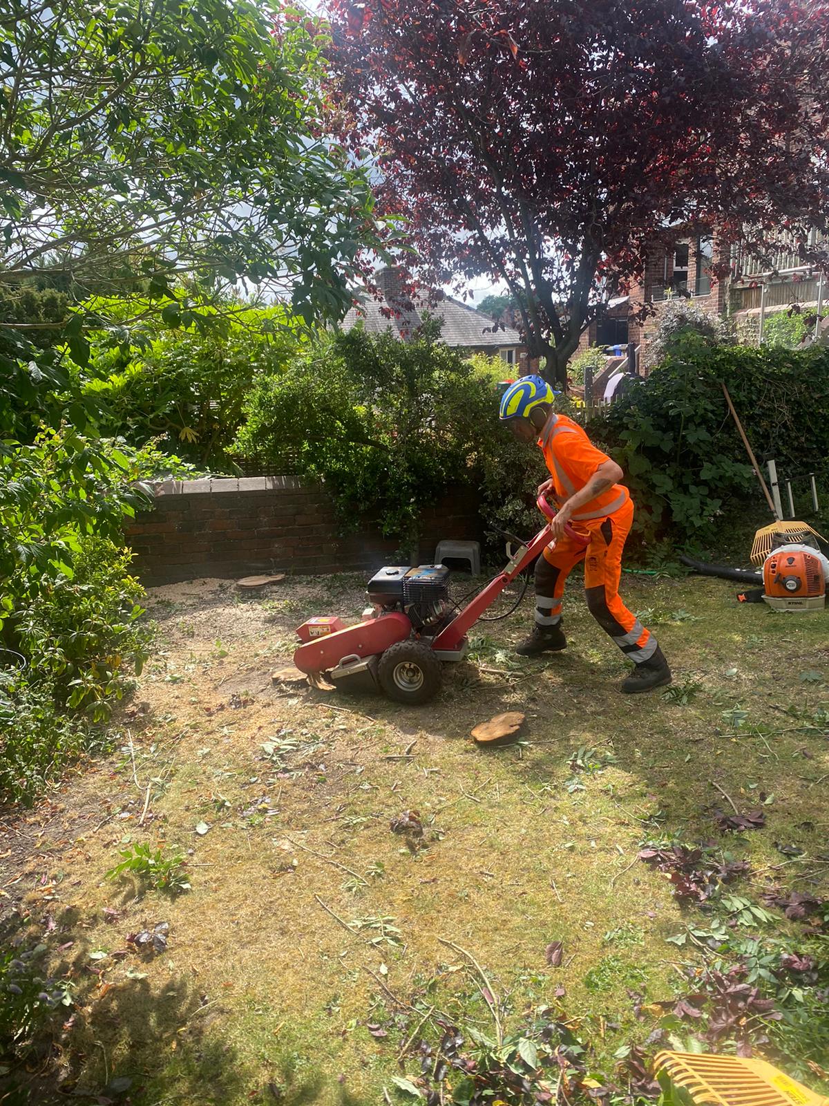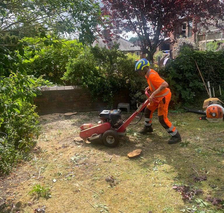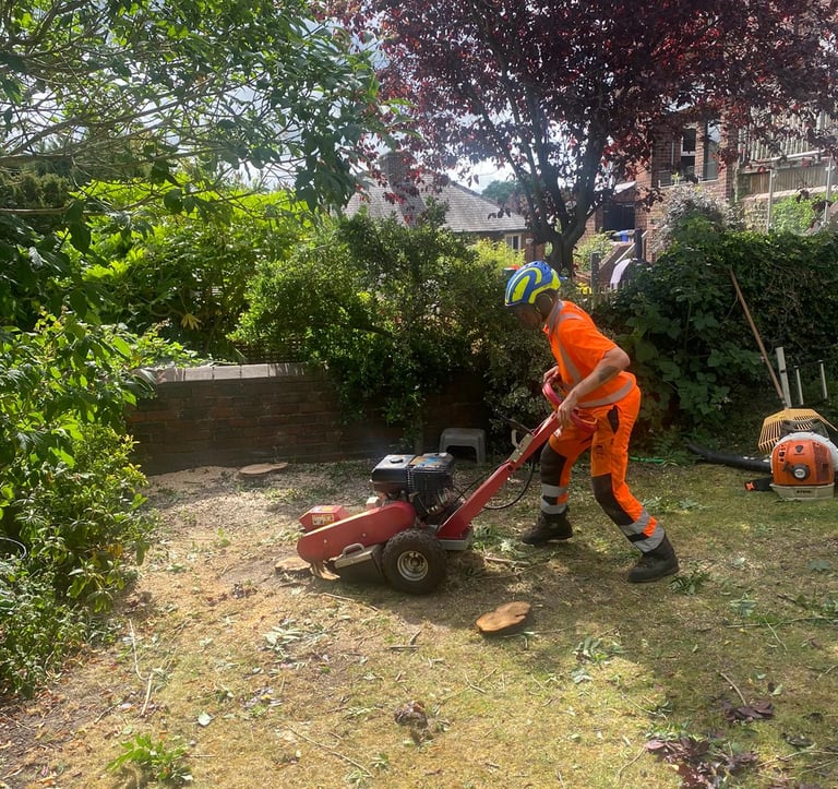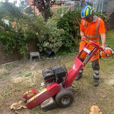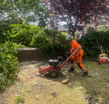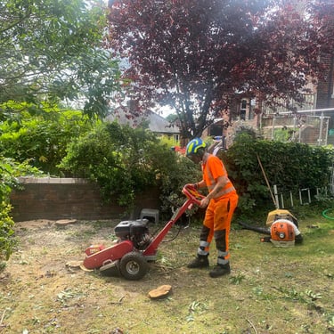 After a tree has been removed, our Tree Stump Grinding service steps in to eradicate any unsightly or hazardous remnants. Moreover, it opens up possibilities for planting new trees or landscaping. We utilize a specialized tool called a stump grinder, equipped with a rotating cutting wheel that efficiently grinds the stump's wood into small chips. We the stump down below the soil surface, leaving a shallow depression that can easily be filled with soil or mulch.